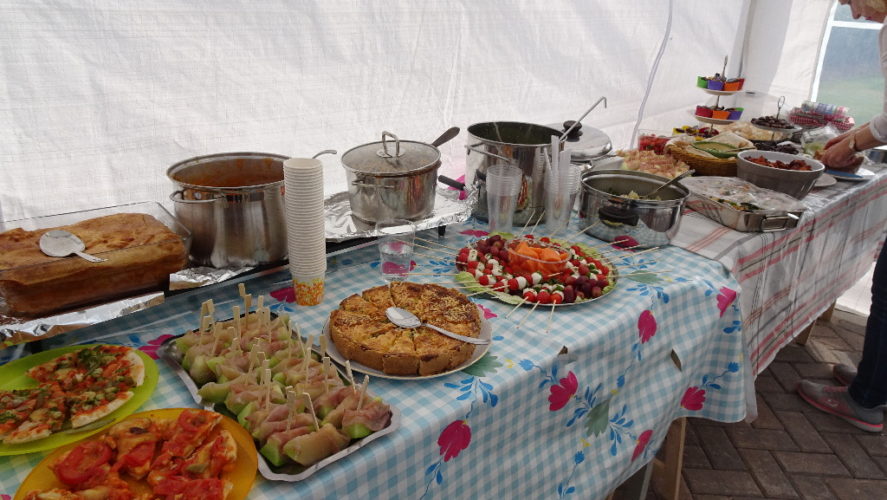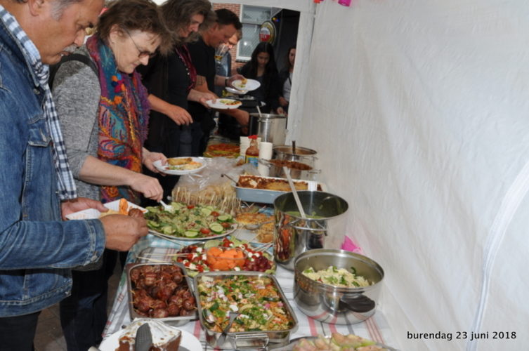 mdat in de afgelopen twee jaar veel bouwactiviteiten op het voormalige terrein van de boerderij van de familie Hooijberg zijn geweest, hebben de nieuwe bewoners hun dorpsgenoten uitgenodigd voor Burendag. De organisatie zorgden zoals gebruikelijk bij de burendag in Hobrede voor consumpties; de bezoekers namen allemaal gerechten mee.