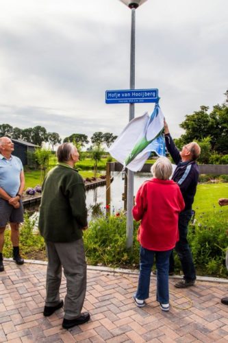 Uit waardering voor de familie Hooijberg en hun rol in de geschiedenis van Hobrede hebben de nieuwe bewoners hun straatje zelf omgedoopt tot ‘Hofje van Hooijberg‘, zodat we dit als straatnaam kunnen gebruiken. De onthulling is door de familie Hooijberg zelf gedaan, hetgeen hun niet onberoerd liet.